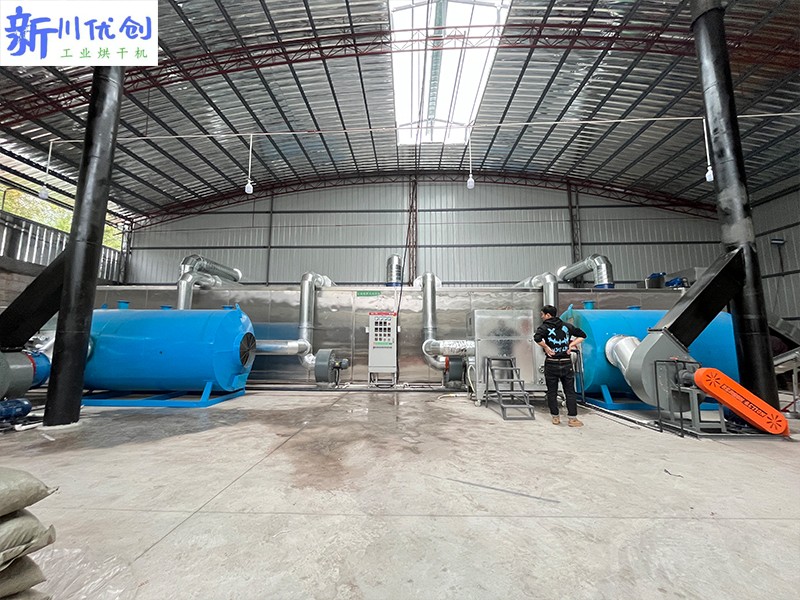 重慶開州客戶訂購我司1套網(wǎng)帶式烘干機,用于陳皮烘干,與我司技術(shù)詳細溝通和方案確認后,選定用生物質(zhì)顆粒為熱源。根據(jù)客戶需求進行設(shè)計,烘干機尺寸是:24×6×4.5米,現(xiàn)這條網(wǎng)帶式烘干機現(xiàn)已搭建完成,已經(jīng)投入正常使用中,讓我們來看看現(xiàn)場反饋吧!